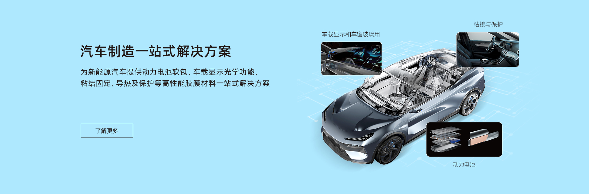 致力于為汽車制造、消費電子、智慧顯示端口等行業客戶提供包括新能源材料、電子功能材料、光電顯示材料、有機硅材料在內的產品研發(fā)、生產、銷售于一體化服務,建立了專業的市場營銷與技術服務團隊,為客戶提供高性能膠膜材料一站式解決方案。